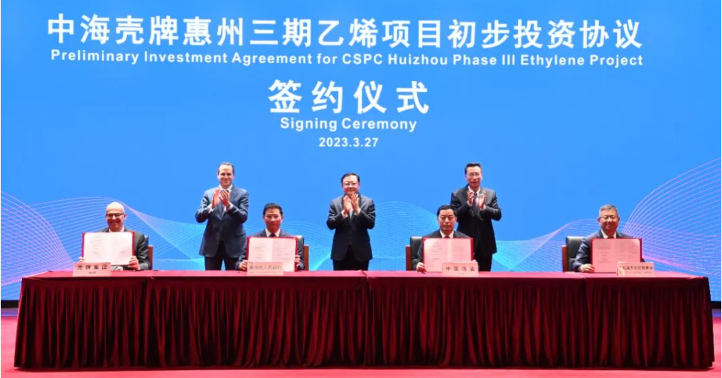 3月27日,中海殼牌惠州三期乙烯項(xiàng)目初步投資協(xié)議簽約儀式在北京中國海油大廈舉行。廣東省省委副書記、省長王偉中,中國海油董事長汪東進(jìn),殼牌集團(tuán)首席執(zhí)行官魏斯旺等出席活動(dòng)。