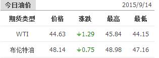 2015年9月14日國際原油價格表