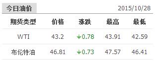 2015年10月28日國際原油價格表