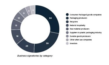 自“新塑料經(jīng)濟全球承諾書”發(fā)起四個月以來,簽署承諾書的企業(yè)數(shù)量由100多個增加到150多個。參與企業(yè)的數(shù)量占據(jù)了超過全球20%的塑料包裝企業(yè)。