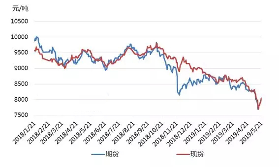 圖2 2018-2019年期現(xiàn)貨對比走勢圖